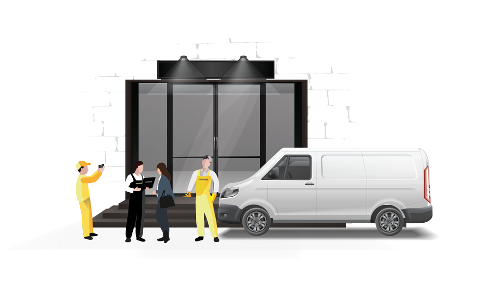 Обязательной составляющей реализации проекта является выезд на объект с целью согласования условий монтажа, подключения питания, узлов креплений, снятие замеров.